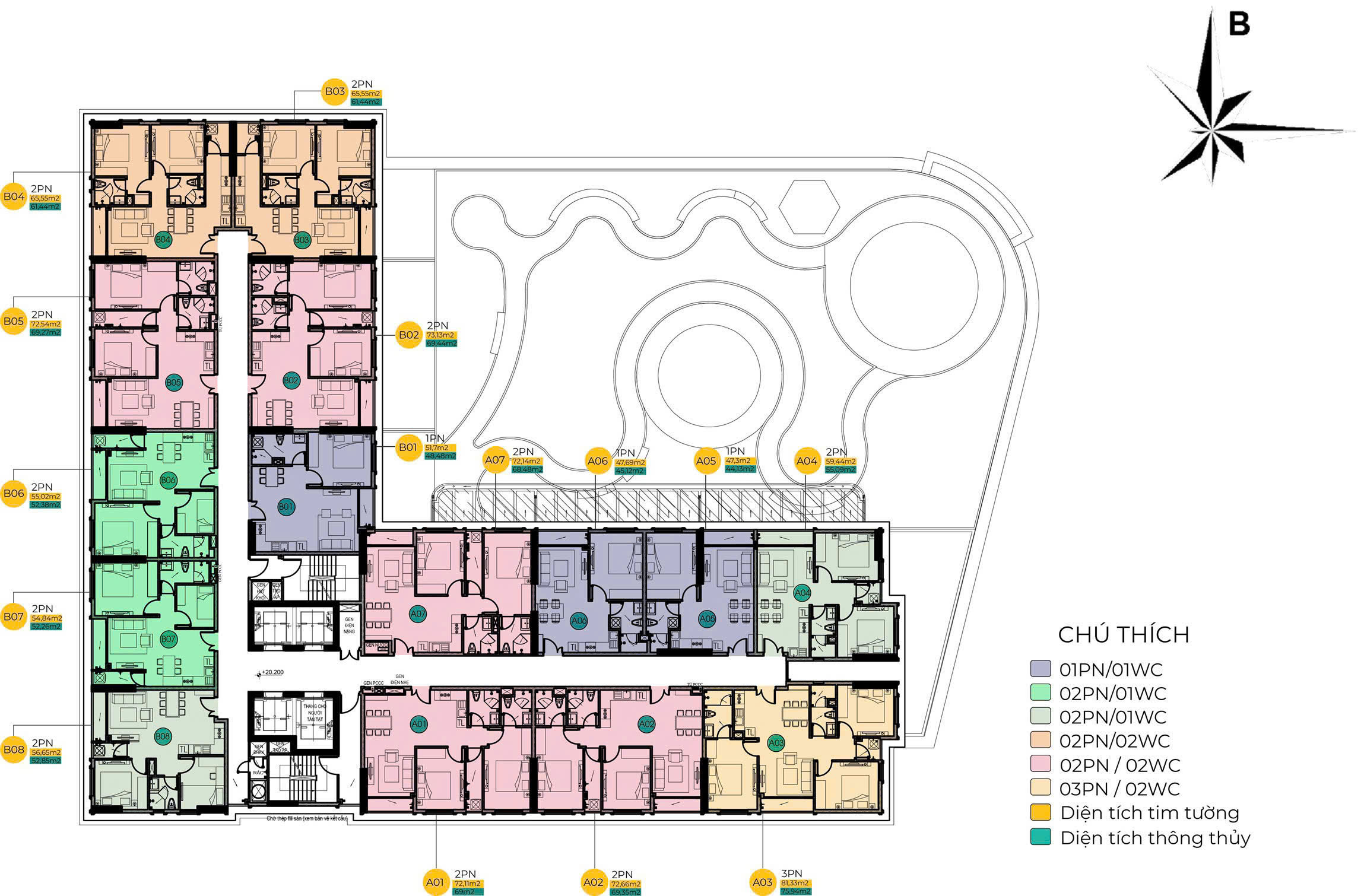 Căn hộ 1 – 2 – 3 phòng ngủ, diện tích từ 51m² – 81m².